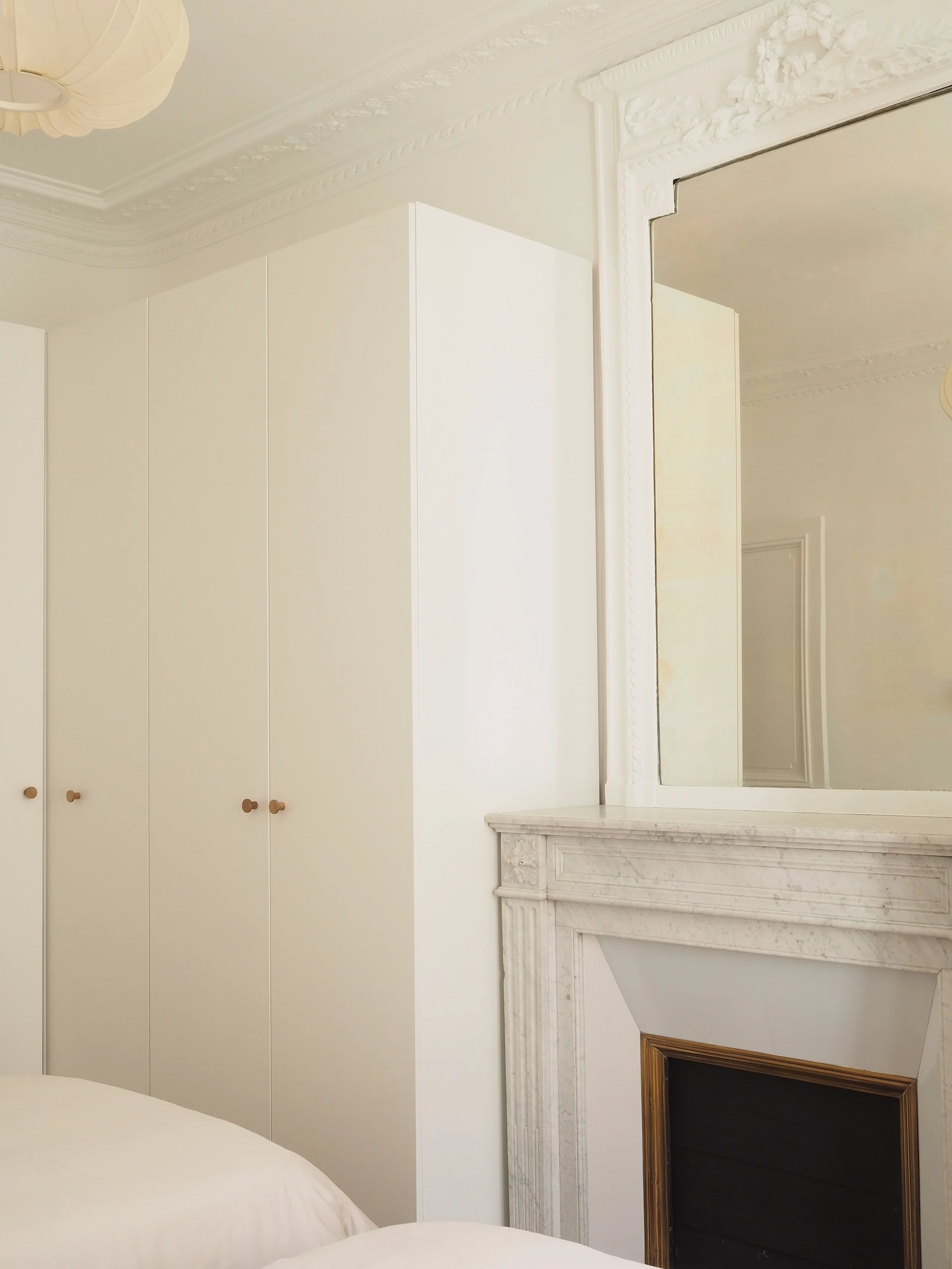 Ce projet de rénovation d’un appartement haussmannien de 120 m² visait à préserver le charme de l’existant tout en y insufflant une esthétique contemporaine, sobre et élégante. L’intervention a porté sur l’ensemble des espaces de nuit, avec la création d’une suite parentale et la refonte complète des chambres et salles d’eau.